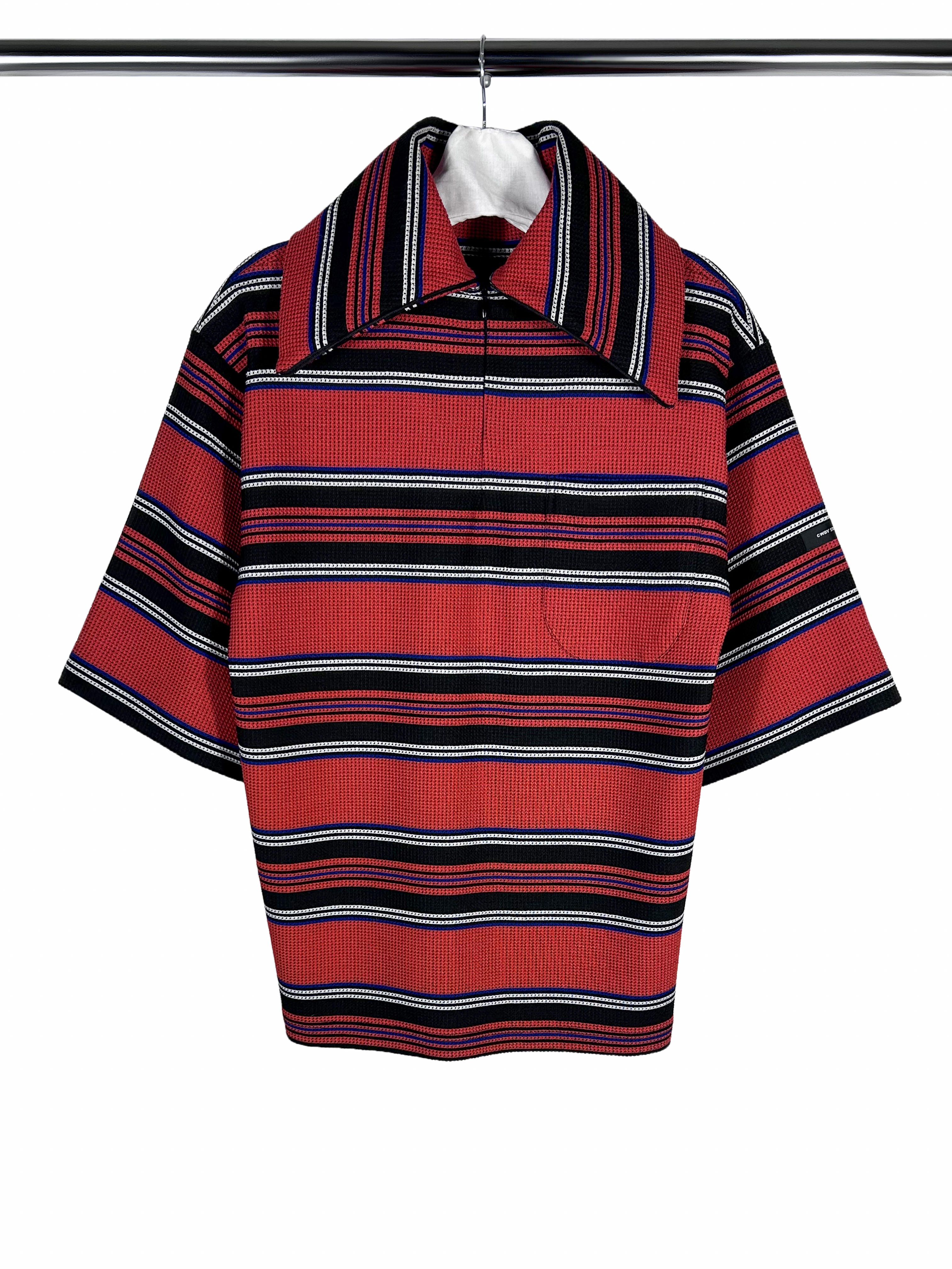 Knit Jersey in Multi color Red, White, Blue, is apart of look 7 of CWBY STUDIOS FALL 25’ Collection. This hand sewn garment is tailored, and produced in Los Angeles.